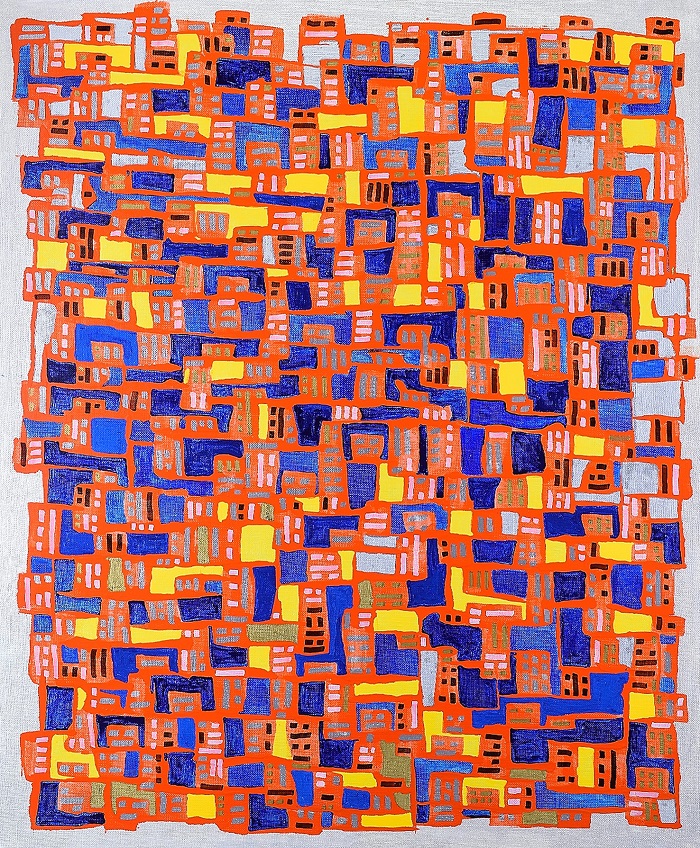 単純化された多角形と幾何学的抽象論を基に描かれています。