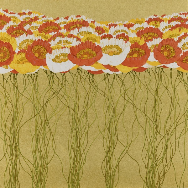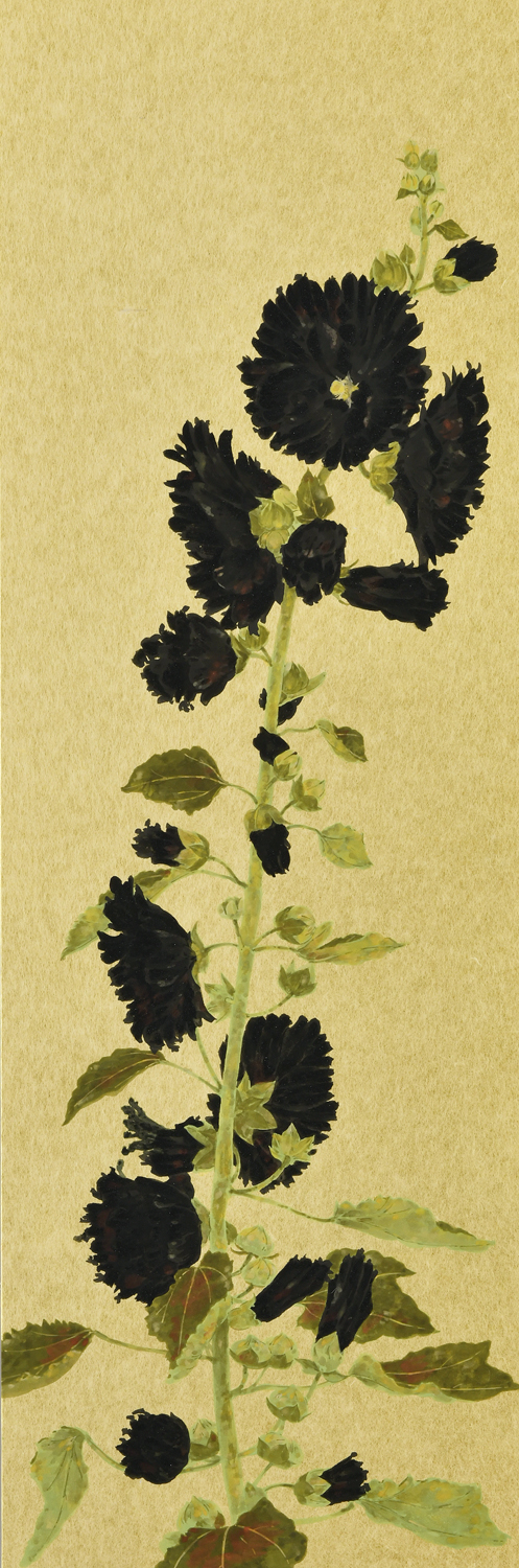 「クロノタチアオイ」90×30cm金箔、典具帖紙、岩絵具、紙郷紙