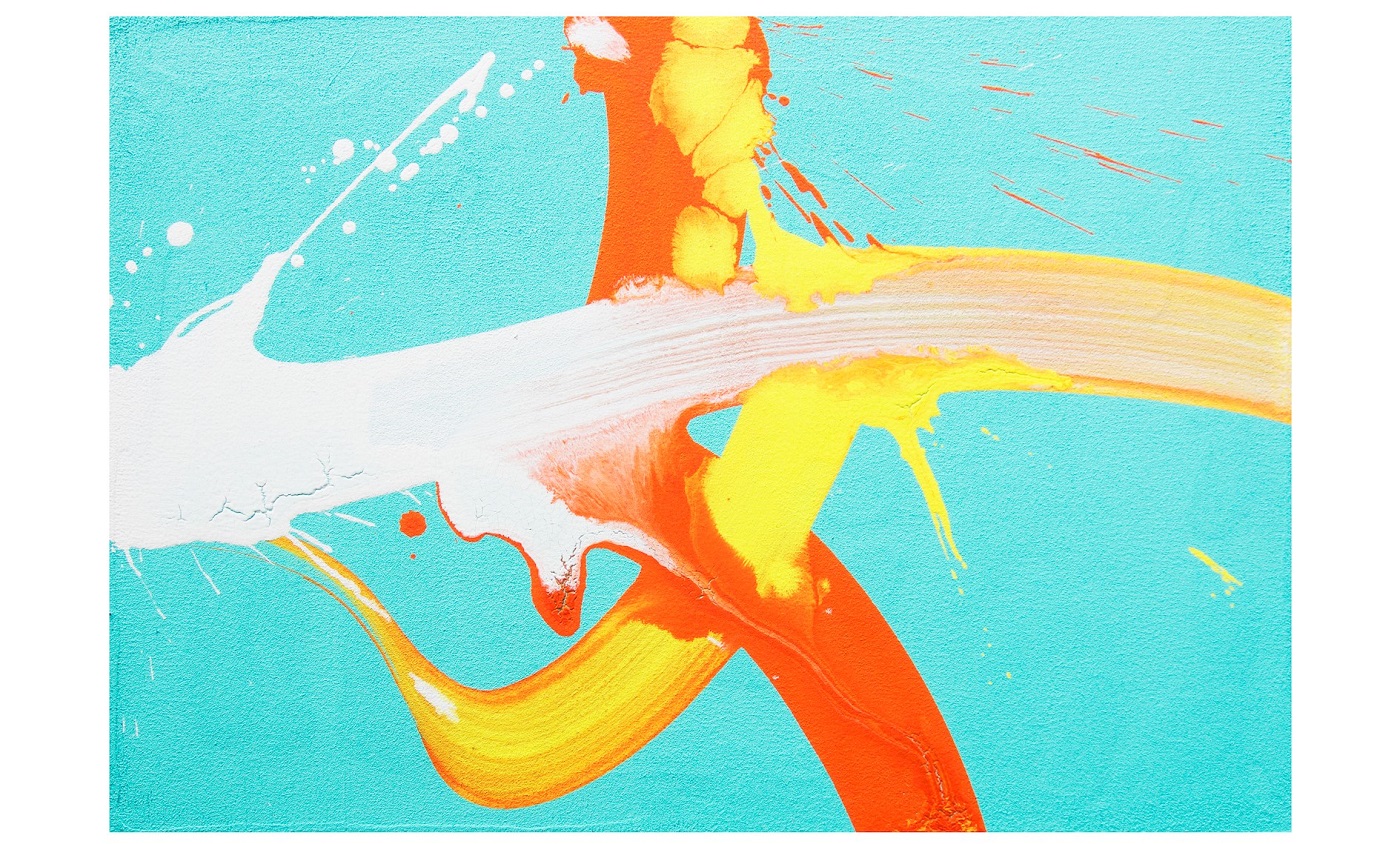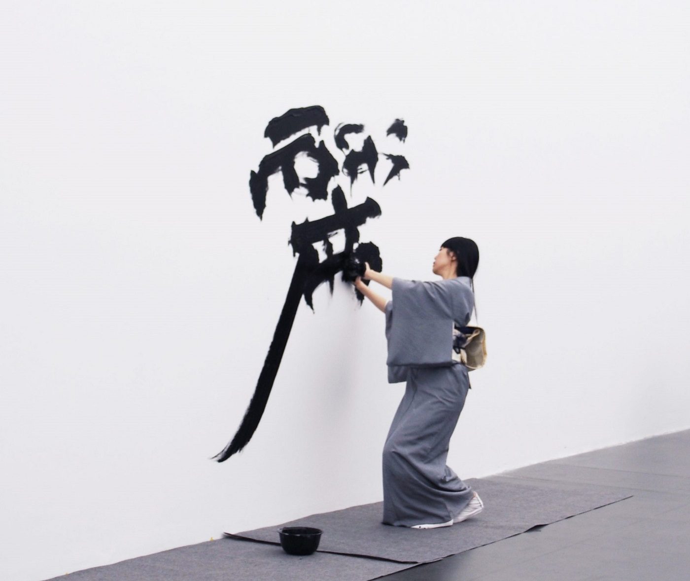 漢字では珍しくすべての筆画が交わる「女」をモチーフにした”KUNOICHI”はひらがなの折れ線「く」、カタカナの曲線「ノ」、漢字の直線「一」の三画で組み合わされた「女」を、伝統と革新のバランスを保ちつつも、「書道」=「墨」という既存の概念をも凌駕したビビッドな色彩と共に表現。