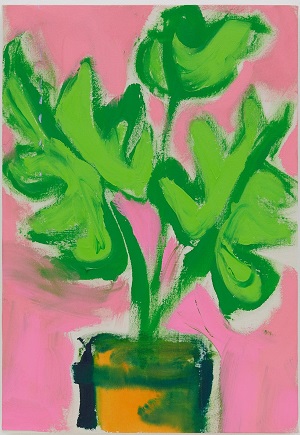 左)とある未亡人の観葉植物「小さいサイズでいい」2018 Acrylic on canvas 67.4×46.3cm ©Ellie Omiya,courtesy of Tomio Koyama Gallery