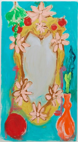 右)とある未亡人の鏡「楽しい鏡」2018 Acrylic on canvas 178.0×97.5cm ©Ellie Omiya,courtesy of Tomio Koyama Gallery