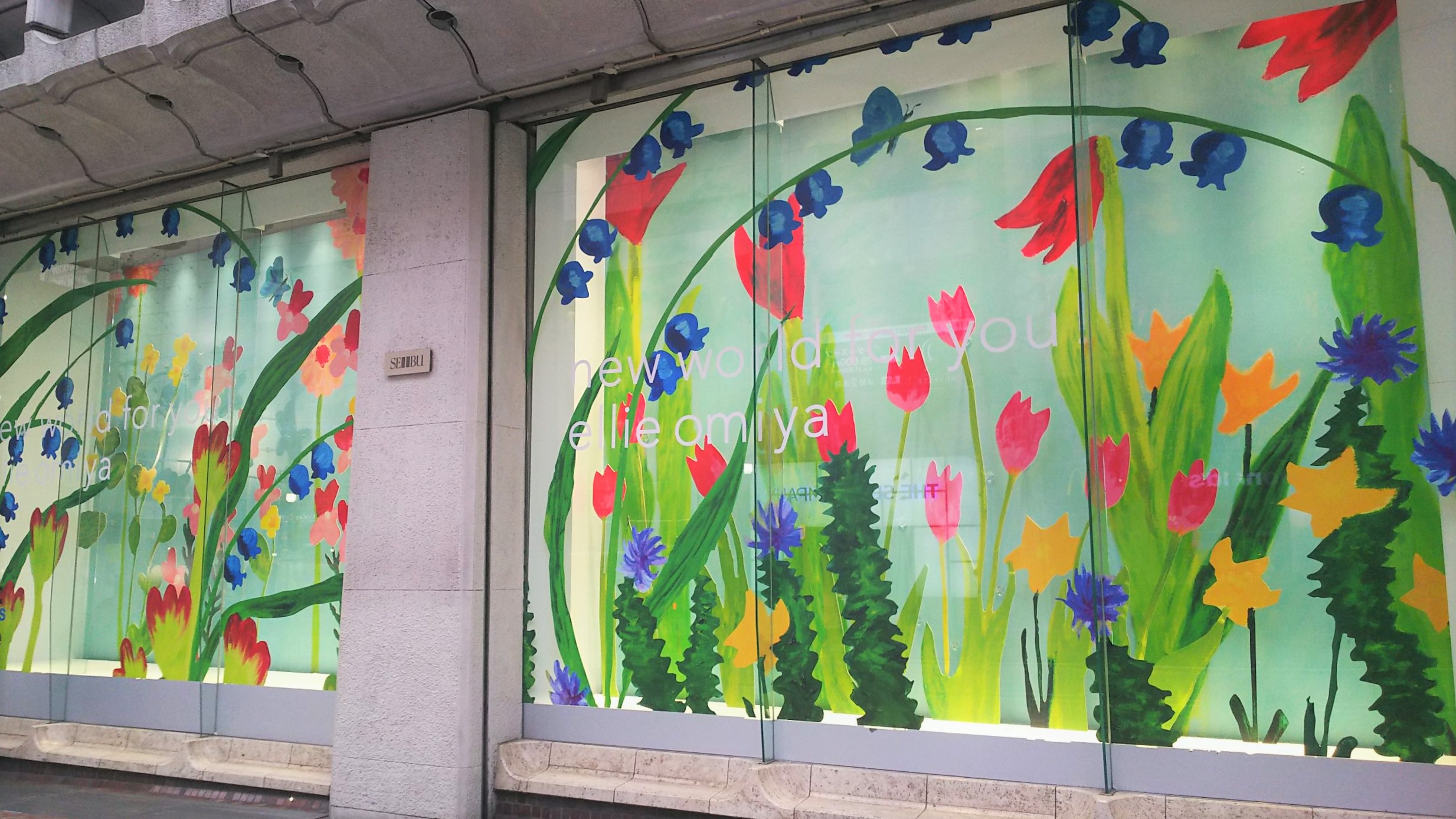A館ウィンドーで立体的に表現された大宮エリーさんの「new world for you」