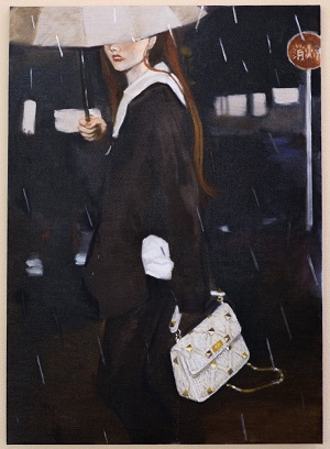 右)「青い雨/Blue-rain」アパレルメゾンのVarentinoが新シリーズバッグRoman Studの発表プロジェクトとして、世界中のライジングアーティストから5名を選びイメージビジュアルを依頼。