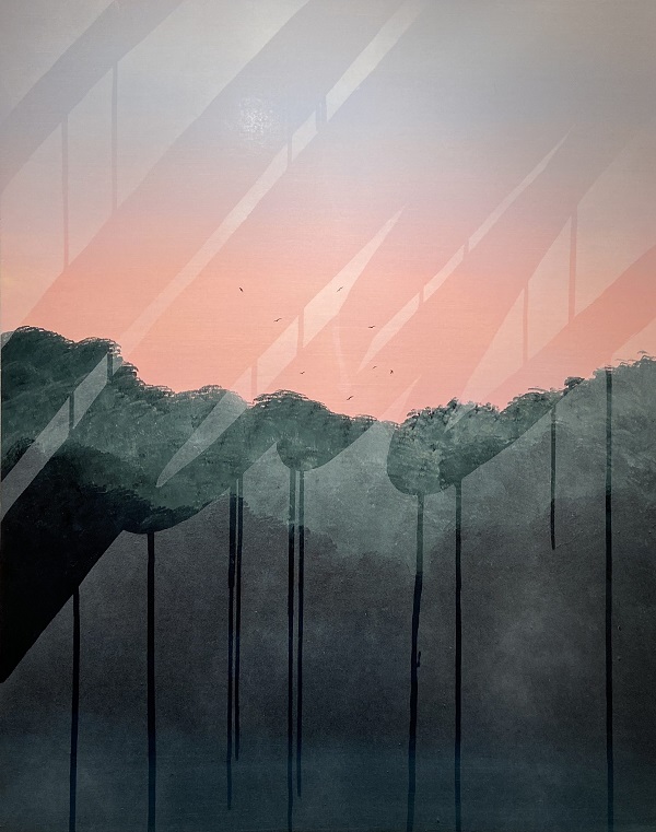 「Sunset」 91×72.7 木パネル、綿布、アクリル 2021