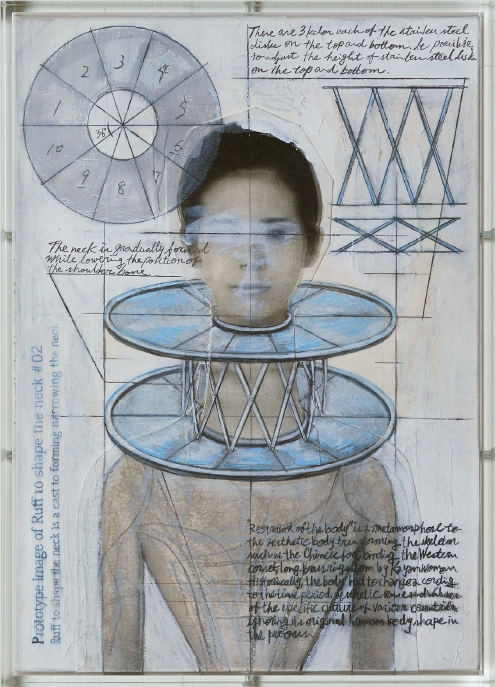 She predicts the global environment will be “warming around 10°C and increasing arid areas” in 1000 years. She says the “beautiful body of the future has a vision of being simply a strong thing to live as a living organism even in a harsh environment. This is inspired by the view that in the process of human evolution,” pioneers were born from the weak and humans continued to evolve. Therefore, she focused on the physical characteristics of the Dinka people living in the arid regions of Africa today and the genetic diversity of the populations living in the African regions. In order to give a glimpse of her flow of research, study, and making through this exhibition, works such as drawings and body devices will be exhibited.