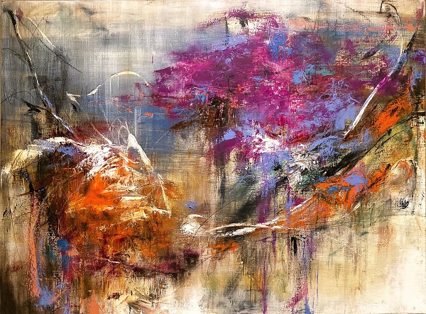 自身の記憶より遥か太古の昔から石は積層を重ね、形を変えながら今に至っていることに重きを置き、時空の変遷である石の積層に自身の色を重ね2.5次元的な空間、今現在を表しアブストラクト(抽象的)な作品を制作している。描いては削る工程を幾度となく繰り返し制作された絵画は、国内最大級のアートフェア東京においても高い評価を得ています。本展ではメッセージを画面に取り入れた新作のステートメントシリーズを発表いたします。
