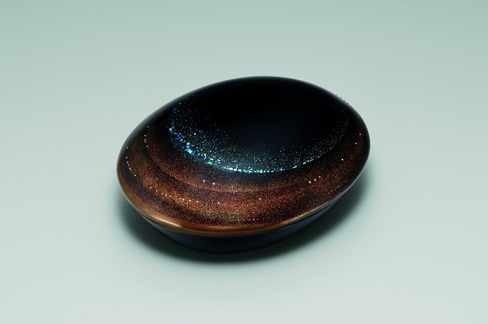 径22×高10.6cm 木胎、乾漆/水金粉、玉虫具、顔料、パラジウム銀粉[蒔絵、螺鈿、平文]