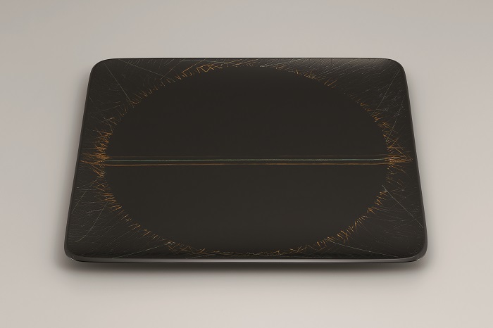 奥行28.2X幅30.7X高2.8cm 乾漆/金粉、顏料[線描]