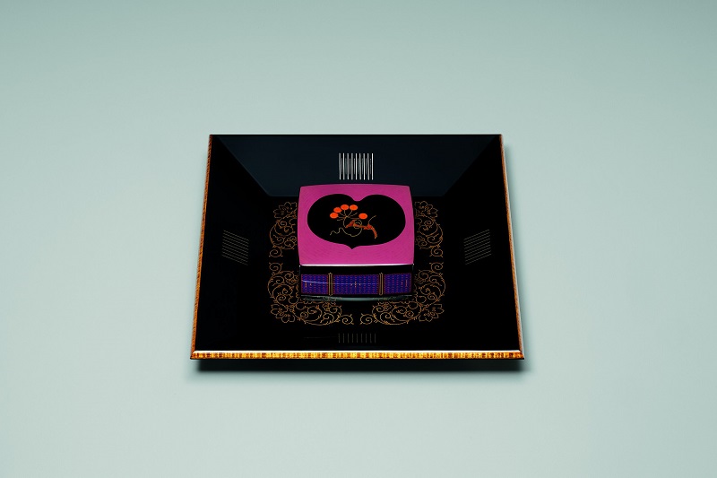 奥行8x幅8X高3.8、奥行21.8X幅21.8高3.5cm 木胎/金粉、顔料、プラチナ[漆象嵌]