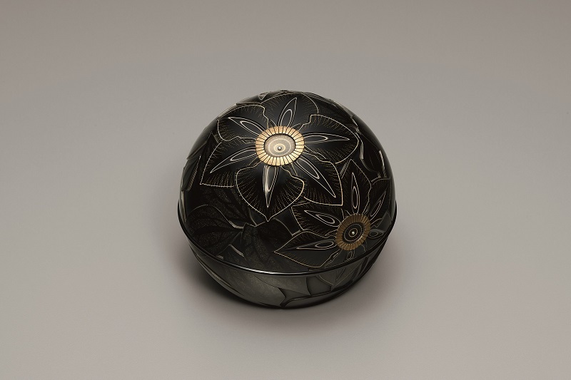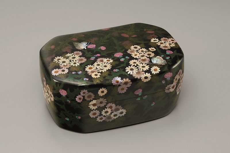奥行18.3x幅25.5x高12cm 乾漆/金粉、金箔、白蝶貝、顔料、和紙、プラチナ粉[螺鈿、髹漆、切絵]