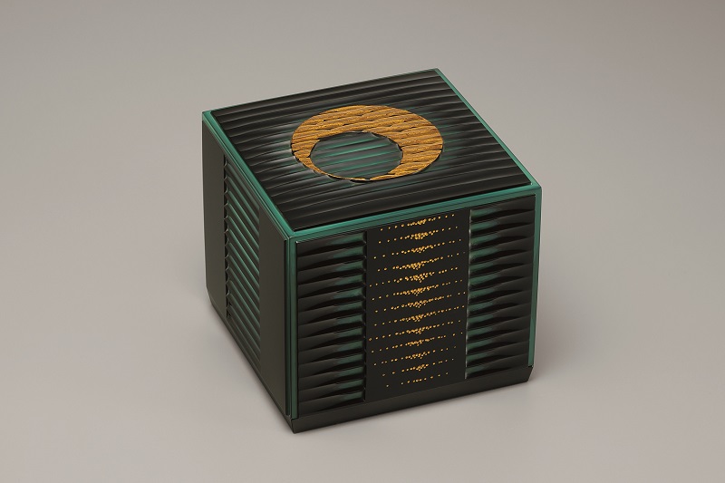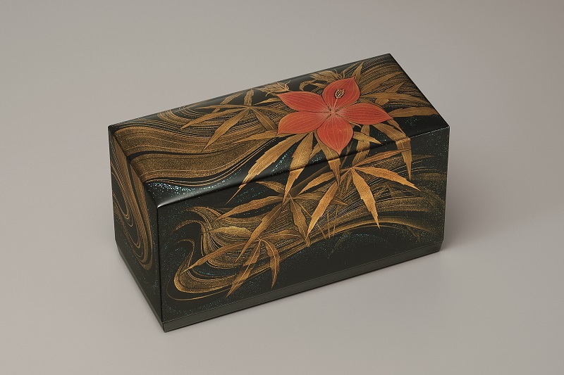 奥行13.4X幅25.6X高14cm 乾漆/金粉、顔料[沈金、蒟醤]