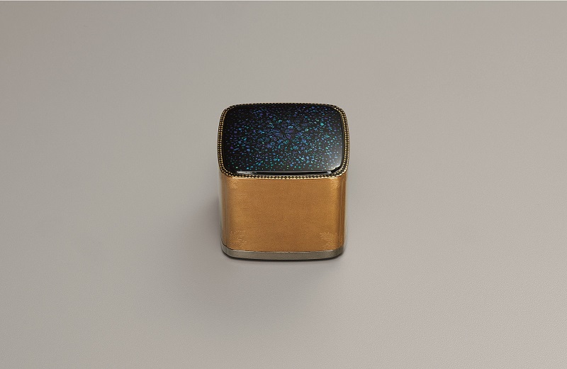 奥行6.1X幅6.1X高5.5cm 乾漆/金粉、銀粉、玉虫貝[蒔絵、螺鈿、平文]