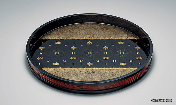 径36.5×高3.5cm 木胎、アテ/銀粉、玉虫貝、金板[螺鈿、切金]