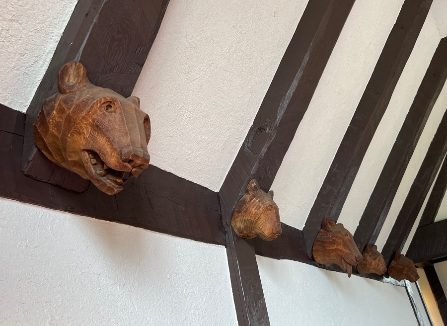 生き生きとした表情で1つ1つが異なったポーズの熊たちが、今もこの建物の長い歴史を語ってくれています。