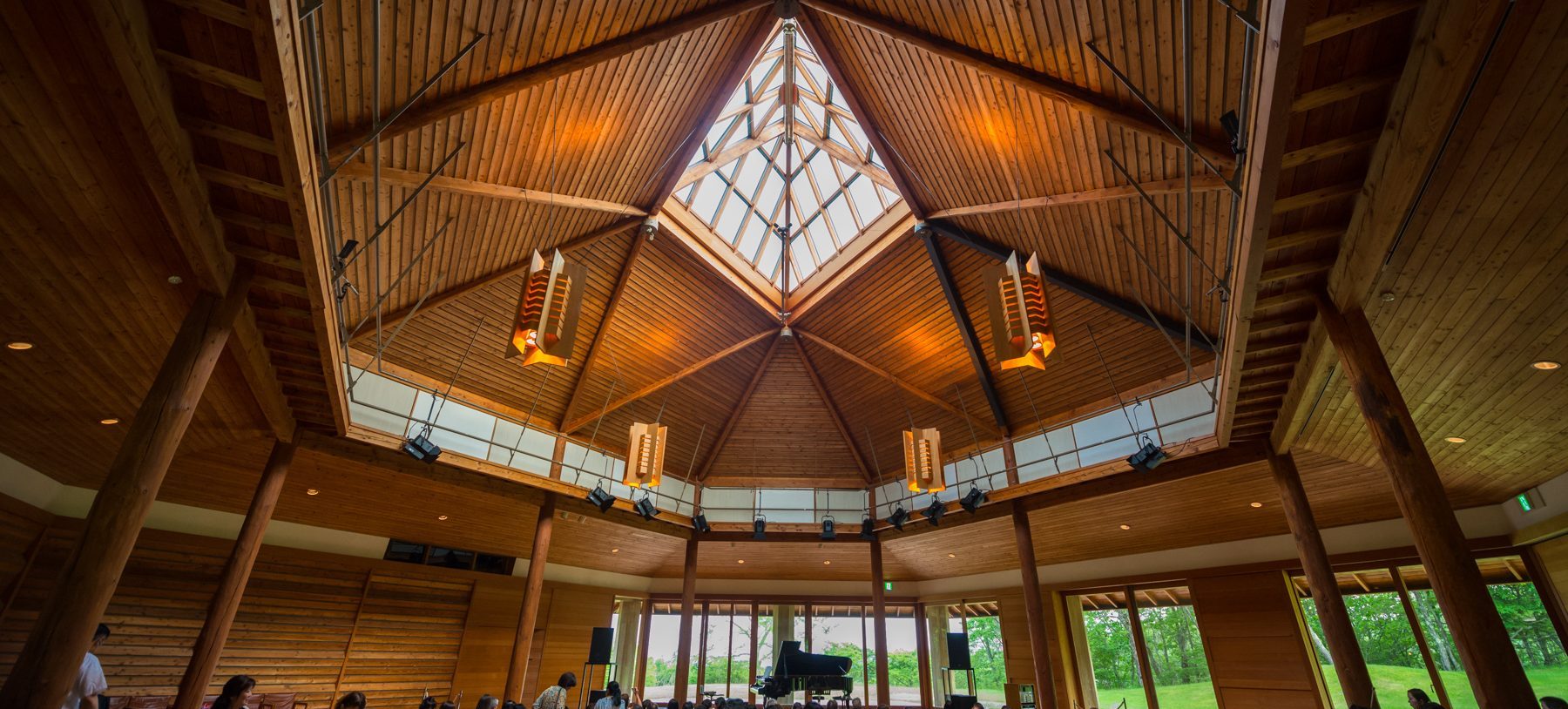 世界的な音楽家が集うコンサートホール。20世紀最大のピアニストと称されるスヴャトスラフ・リヒテルの提案と、日本を代表する作曲家・武満徹の助言で1988年に完成しました。カラマツをはじめとする木材をふんだんに使用していて、建築界の巨匠・吉村順三による自然との調和を目指した設計が特長です。