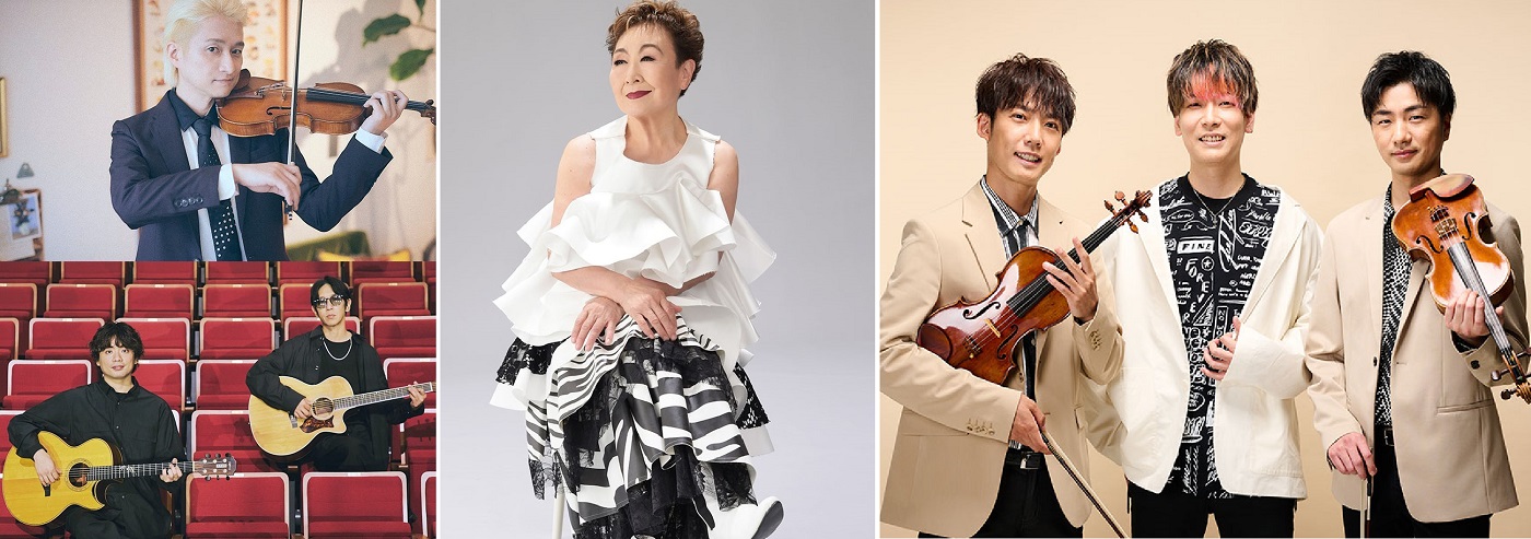 ●NAOTO(ヴァイオリン)1973年、大阪府高槻市出身。第39,41回全日本学生音楽コンクール西日本大会で第3位、第42回に は同コンクール第2位、霧島国際音楽祭奨励賞を受賞。東京藝術大学音楽学部附属音楽高校、東京藝術大学音楽学部器楽科卒業。クラシックからポップスまでジャンルにとらわれない音楽センス、ブリッジをしながらのアクロバティックな演奏など華麗なパフォーマンスで人気を博す。ドラマ「のだめカンタービレ」では、オーケストラの選考、吹き替え演奏、楽曲提供、そしてドラマに役者としてゲスト出演し、一躍注目を集めた。2005年にメジャーデビュー。作曲家として、NHK「スタジオパークからこんにちは」を始めとするテレビ番組やたくさんのCM、劇団TEAM NACSの主宰公演の音楽監督を担当。ラジオパーソナリティー、TV朝日系列「関ジャム∞完全燃Show」「マツコの知らない世界」出演など、活動は多種多彩に渡る。●DEPAPEPE 2002年11月徳岡慶也と三浦拓也で結成された、2人組ギターインストゥルメンタルユニット。アコースティックギター2本で、さわやかなメロディーと柔らかな音色で心象風景や喜怒哀楽といった感情、四季折々の情緒を表現する。2005年アルバム「Let’s Go!!!」でメジャーデビュー。第20回日本ゴールドディスク大賞にて、ニューアーティスト・オブザイヤーとインストゥルメンタル・アルバムオブ ザイヤーの二冠に輝く。2020年にはメジャーデビュー15周年を迎え勢力的に活動中!!