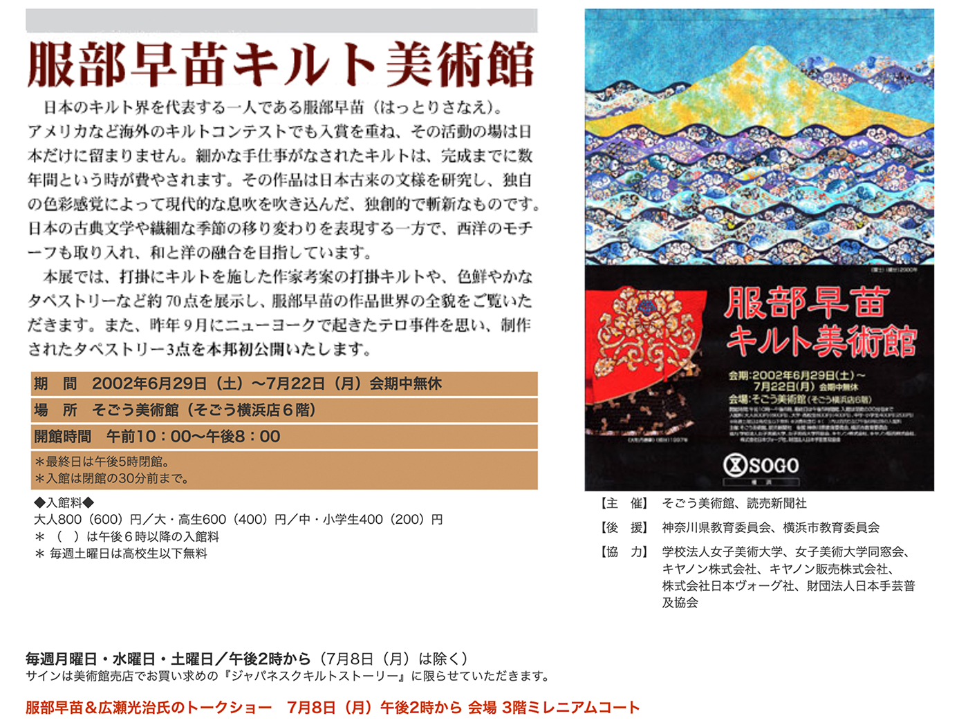 D11 服部早苗キルト美術館 服部早苗 2002年6月29日(土)~7月22日(月)