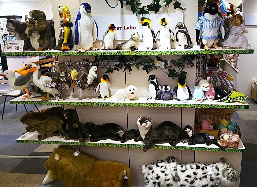 こちらはハンサの鳥類や海の生き物。動物園だけでなく水族館でおなじみの海の動物や魚類にもぬいぐるみがあるんです。