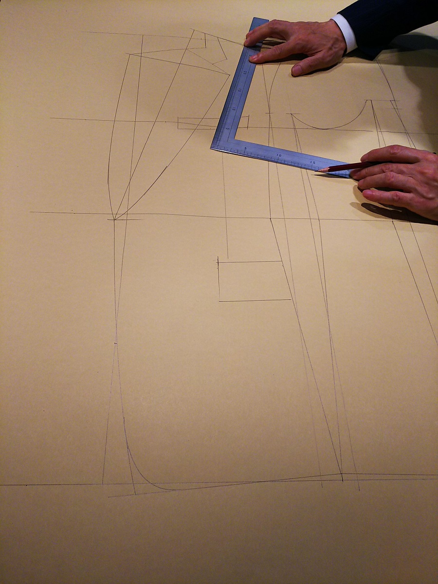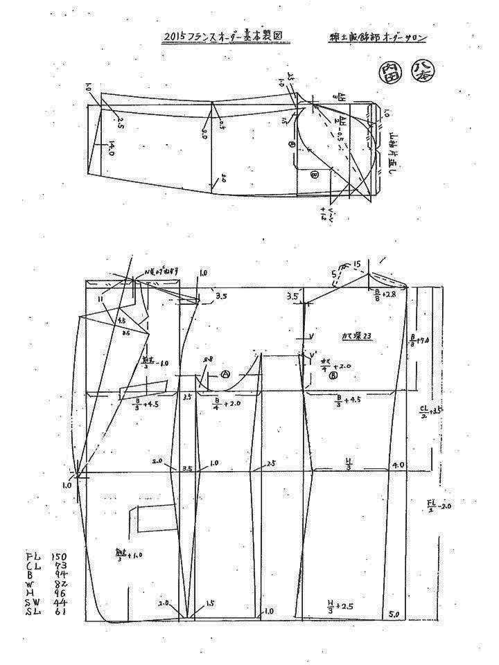 基本となる1960年代のスケッチや型紙をベースに今の時代に応じて改良した新たなフレンチスタイル。一般的にオーダーメードの中心となる、かっちりしたスクエアショルダーの英国スタイルより洒脱感があります。またナチュラルなドロップショルダーぎみのクラシコイタリアスタイルよりもオーダーメードらしい凛としたフレンチスタイルは、実は多くの日本人の体形をうまく引き立ててくれるといいます。