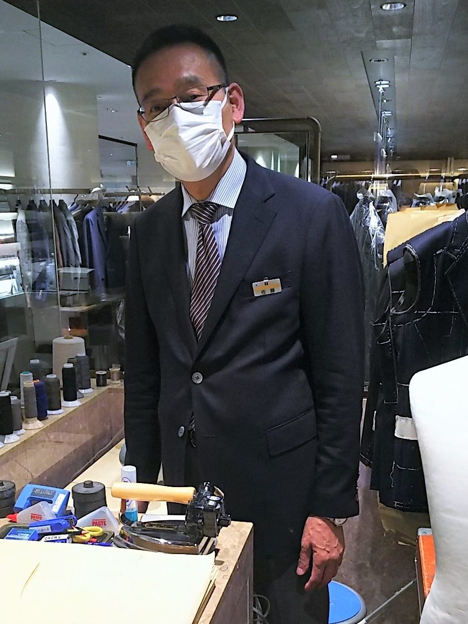 熟練した職人技による採寸に基づき、お客様1人1人のご希望を伺いながら、フレンチスタイルの基本に現代のスタイルを加味して、21世紀のフレンチスタイルの型紙がお客様1人1人のために作られていきます。佐藤秀典マイスターは池袋本店を皮切りに全国のオーダーメード売場で30年以上のキャリアを積んだベテランです。