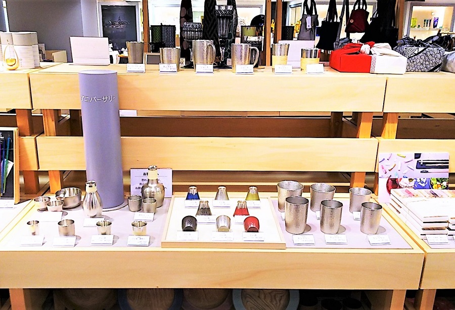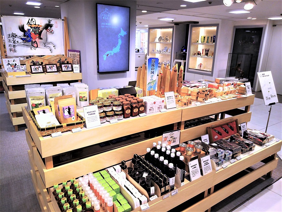 エスカレーターに面したポップアップコーナーは毎月、プロダクトデザイナー倉本 仁氏の監修による都道府県の一つを取り上げます。さらにここ「くらしのぎふと」は定番的なコーナーとして日本全国を北海道・東北、関東・北陸、中部・近畿、中四国・九州の4つのゾーンがあります。そしてそれぞれのエリアを代表する木製品、陶磁器、鋳物、革製品、ガラス、布製品など各地の名品は、都内ではなかなか一堂にそろうことはまれかもしれません。どのアイテムも県産品パイロットショップに出てくるような各県一押しの商品が並ぶことで、それぞれ旅先で初めて出会うようなこだわりの商品を、わざわざ足を運ぶことなしに手に取って確かめることができます。希少性あるアイテムはどれも大切な人へのギフトにも最適です。「希少性の高いものをギフトに選ぶ」ということは、贈ってくれた人を長く記憶に残すということになるため、欧米ではギフトアイテムには希少性の高いものを選ぶことがギフトの主流となっています。