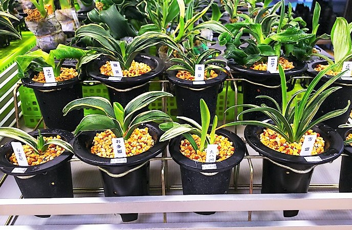 富貴蘭は元々はフウランという樹木や岩場に根を伸ばして貼りつく着生蘭。かつては日本各地の村落や町のそばの身近な場所でも見られたといいますが現在はほとんど野生種は見られません。コレクター垂涎の希少な品種は一鉢で数百万円を超える価格のものもあります。毎年希少種の番付が発表されており、愛好家たちの関心の的となっています。
