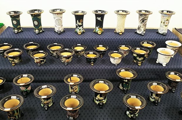 錦鉢に植えられた常緑のおもとは子孫繁栄の象徴ともいわれるおめでたいギフトです。ここには伝統的な錦鉢も各種そろっています。