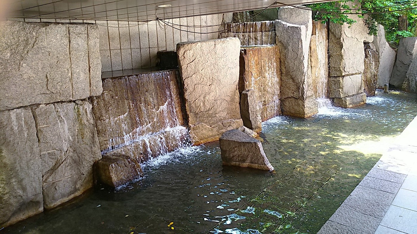 海に近い千葉駅前にあるそごう千葉店。ここはJR、京成、モノレールの乗換駅であり、同時期に誕生したセンシティのオフィスへ通うビジネスマンも多い街です。千葉センシティの一環としてこのエリアが誕生した1990年から93年にかけて、日本を代表するランドスケープアーティスト、鈴木昌道氏の手による「大地の華」が誕生しました。これはそごう千葉店に隣接するジュンヌ館前の巨大な石のオブジェから湧き出した水が、道を挟んだ本館側に流れ込み、この水路がこの本館の裏側に涼しげな遊歩道を作り、本館の地下にある広場では滝となり、夏場のビアガーデンのお客さまのひと時の涼を演出しています。この水の流れがつくる憩いの空間は千葉店全館でこの店ならではの安らぎをご提供しています。また9階こだわり趣味の街や10階レストラン街「ダイニングパーク」にも滝が流れ、全館で水の流れを感じられる店となっています。【2020.3月記】