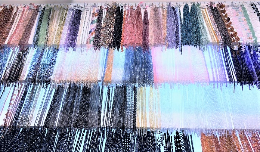 ジェニュインといえば、この「連」と呼ばれる宝石のながい輪を思い浮かべる方が多いと思います。世界各地から集まるあらゆる種類の宝石や淡水パールなど、高品質で手ごろな価格が人気です。
