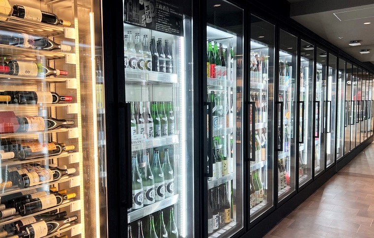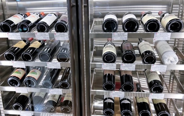 「La Vinothéque(ラ・ヴィノテーク)」の冷蔵セラー。自慢の銘柄が勢ぞろいです。