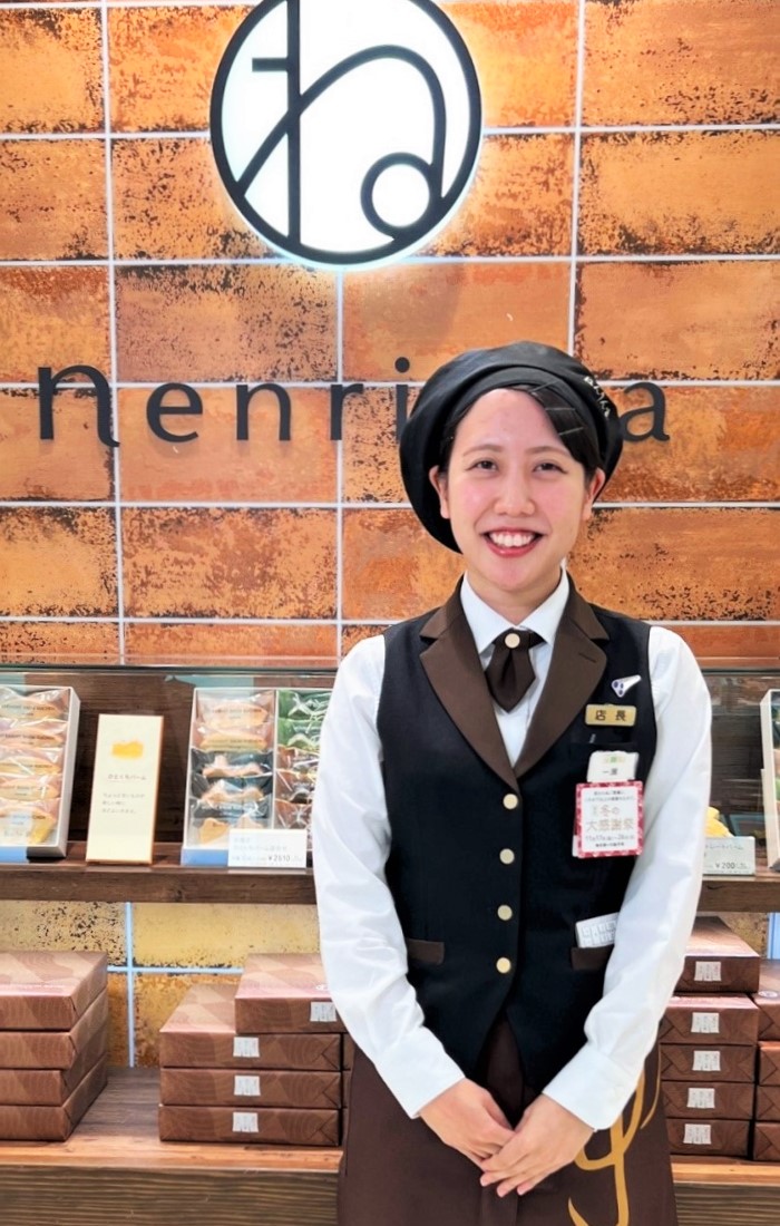 一瀬さんは今年の6月から西武池袋本店に異動してきました。いままで東京駅の百貨店や羽田空港のお店に勤務してきましたが、西武池袋本店では、あわただしかった今までのねんりん家のショップに比べて、ゆっくり吟味して買っていかれるねんりん家ファンのお客さまがたくさんいらっしゃることに気付きました。一瀬さんのイチおしは、濃厚でバームクーヘンとブラウニーの両方の味わいがあるマウントバーム ブラウニーです。