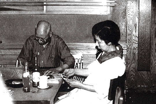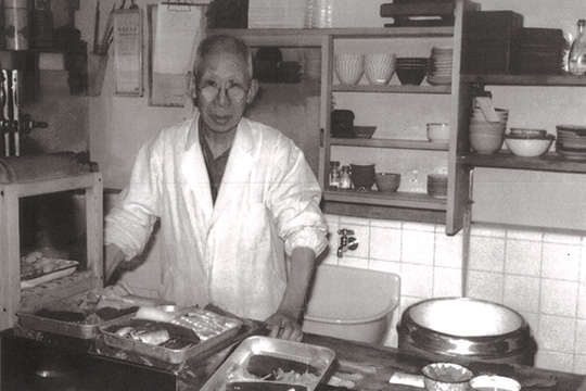 四代目の戸張太啓寿が九段下の店を継いだのは30年前。寿司政では12歳になると、玉子焼き、おぼろ、こはだの〆方、あなごの煮方、ガリ等の仕込み全般を習得するのが習わしでしたが、その後横道にそれ、他業界で別の道を歩んでいました。三代目政次郎の他界後は、妻百合子が101歳で平成22年に他界するまで、30年間寿司政の伝統の味の仕込みを職人達に教え自ら築地魚河岸に行って魚を仕入れていました。百合子は芝百合の名で哥澤の名取として芸事に秀で、食のこだわりも強く、妥協しない性格が寿司政の味を守り通しました。そのため『寿司政は職人が代わっても味が変わらない』と作家の山口瞳さんは語りました。