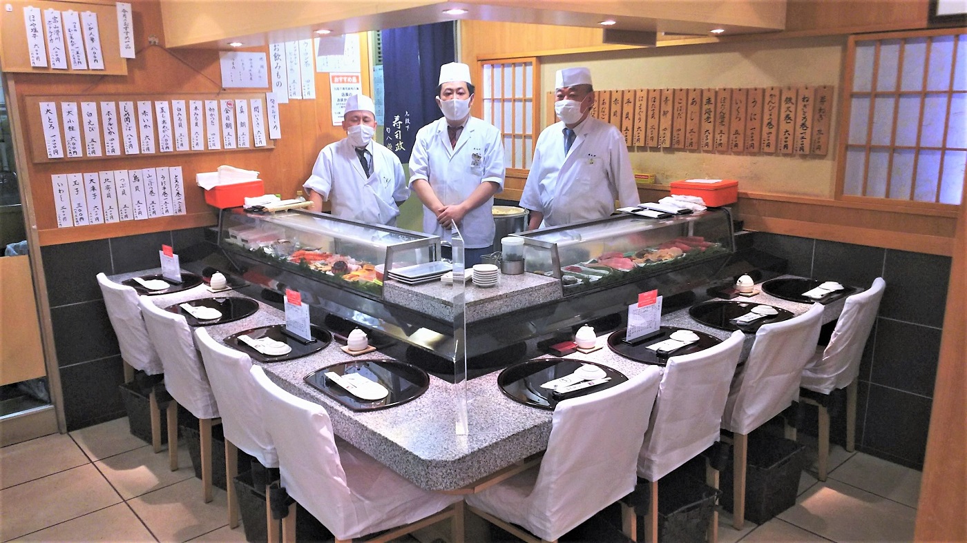 そして平成の初め四代目、戸張太啓寿が他業種から戻り店主となります。そして、五代目戸張正大(長男50歳)が十代のころに祖母百合子から教わった、卵焼き、穴子の煮かた等寿司全般にわたって味の継承を心がけています。近年は世間での寿司の味は昔とかなり変わってきています。しかしガリ一つを取っても、寿司政のガリは昔ながらの酸っぱめで、各々のすしの味を引き立てつなげる役目。寿司の命はいきのよい鮮魚をいかに生かすかです。 そしてもう一つの寿司の本流、煮物ネタ(穴子、煮いか、はまぐり、しゃこ)、〆物ネタ(こはだ、鯖)等も新鮮な仕入ができて初めて代々継承されてきた仕事が生きてきます。それらネタと赤酢を使った握りには寿司政の職人の魂が込められています。