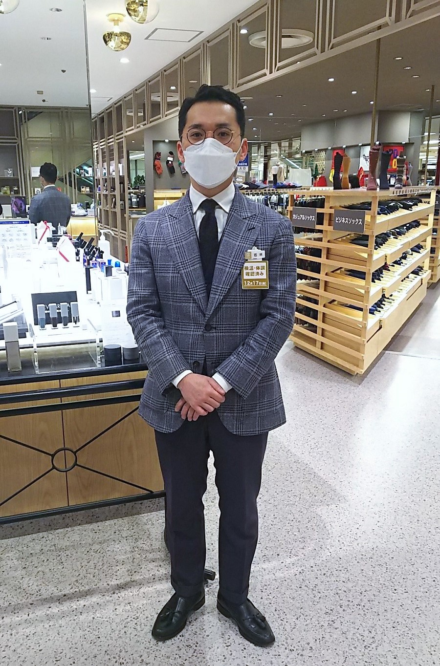 若林係長は紳士雑貨関係の広い売り場を担当しています。中でも今までの紳士服飾フロアの扱い商品にはなかった「男性用化粧品」はズーム会議などの普及で、若手のお客さま以外にも急速に拡大しつつあるアイテムだけに、先輩社員から教わる情報量もあまり多くはないため、日々社外から新たな情報を取込む勉強に余念がありません。