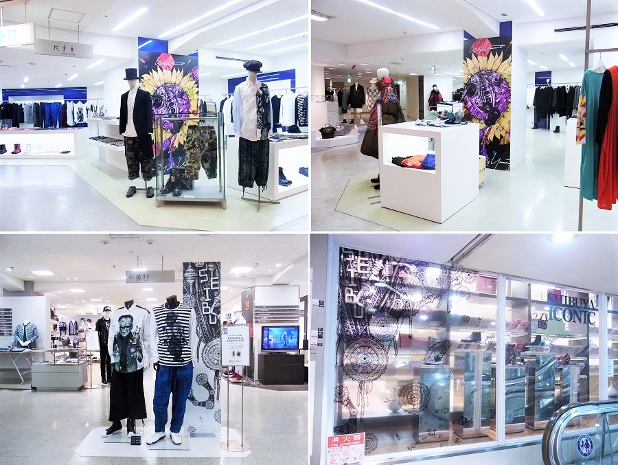 西武渋谷店は‘Art meets Life’「暮らしに、もっとクリエーティブを。」をコンセプトに、多くのアーティストやデザイナーたちとのコラボレーションを全館で実現させてきました。その一端はA館ウインドーで見ることができます。これらは2014年に制作されたA館ウインドーや当時の店内の様子です。この年は御嶽山噴火、広島土砂災害といった自然災害があり地球環境への関心が高まります。世界でもウクライナ危機、イスラム国の台頭、マララさんのノーベル平和賞、香港民主化デモといった既成秩序を巡る攻防が世界を揺るがしました。錦織圭の全米準優勝、日本人3人ノーベル物理学賞など国内には明るい話題もありましたが、STAP細胞を巡る騒動から「リケジョ」という言葉が定着し、従来の男性領域への女性進出が認識されるようになりました。この年は3月に全館でアーティスト集団サイドコアの展覧会が開催され、恒例のブラジル企画に加え、パリコレで話題となった近未来を予感させるアーティスト笹田靖人氏と山本耀司氏のコラボレーションコレクションの国内初の受注会が開催され、全館展開されました。