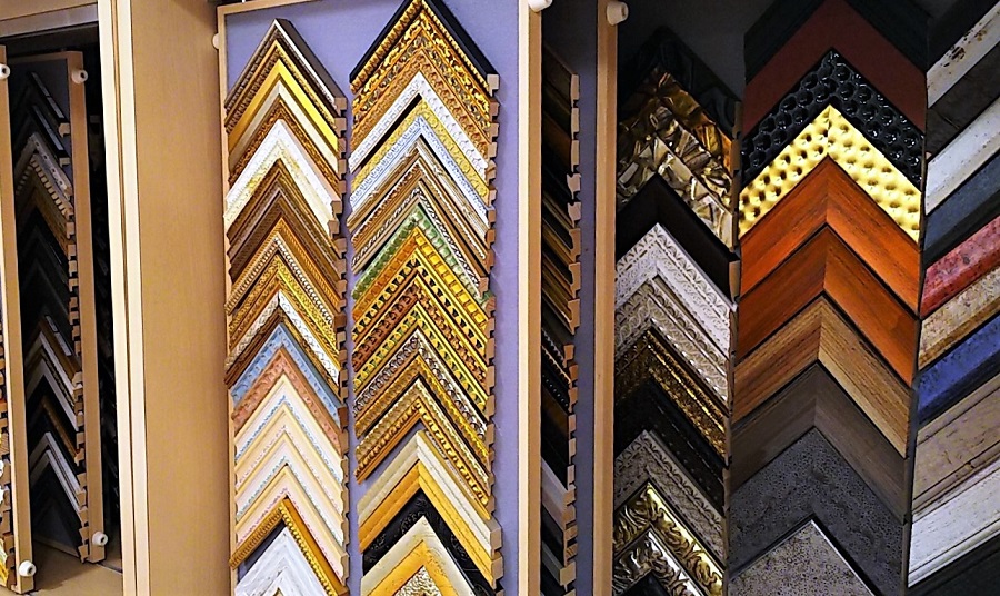 額縁の種類も豊富。飾りたい絵や立体物を持ってきていただき、額を選んでいただくとプロが飾りたい作品にピッタリの額縁を製作します。