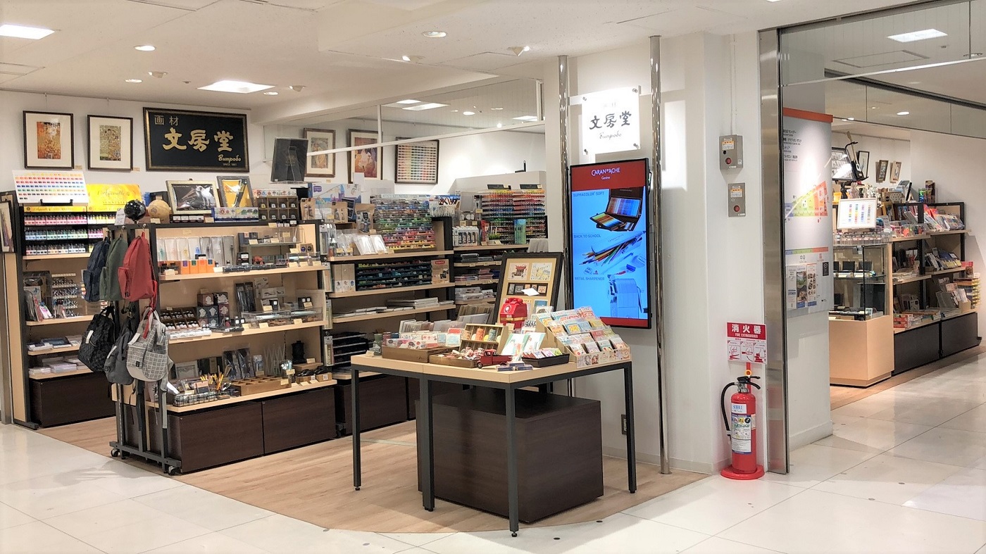 7階南エスカレーター脇の画材文房堂は百貨店の中には少ない画材専門店。明治20年創業の神保町の老舗。創業者の池田治朗吉は、丸善創業者の早矢仕有的とともに福沢諭吉門下生として早矢仕の店の一部を借りて創業。その後日本で初めて専門家用油絵具を製造販売した老舗として知られています。大正10年に発売された文房堂アーチスト油絵具を使って、岡田三郎助、満谷国四郎、藤島武二、小林萬吾らが制作しました。油絵具以外にパステル、アクリル絵具、絵筆、オーダー額縁など絵画を楽しむ暮らしを彩るあらゆるアイテムが揃っています。文房堂の原稿用紙は、明治、大正、昭和にかけて多くの人々に愛されており、中原中也、有島武郎、横溝正史、小林多喜二北原白秋、萩原朔太郎、斎藤茂吉、石井柏亭、梶井基次郎、山本有三、直木三十五、堺利彦、高畠素之、東郷青児、水原秋桜子、網野菊、尾崎一雄、久保田万太郎など、多くの作家・芸術家に使われました。現在、文房堂では有島武郎、中原中也各先生、横溝正史先生の原稿用紙を復刻販売しています。【2020.2月記】