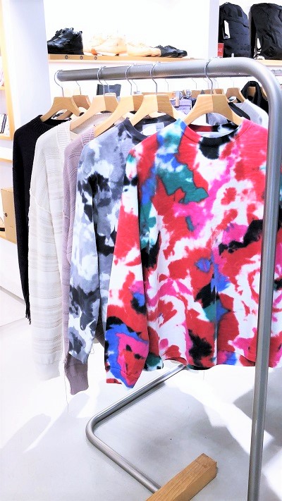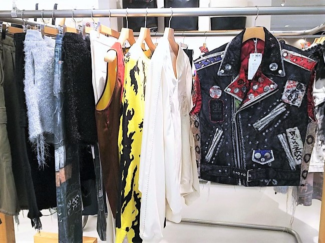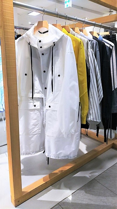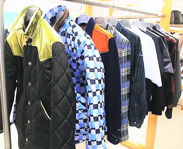正面にディスプレーされるブランドは日々変化しています。今回登場したのはキディル(KIDILL)。キディルは、デザイナー、末安弘明氏が2014年に立ち上げたブランド。デザイナーは読書や日々の生活、会話や環境からインスピレーションを得て、着る人の本質を引き立てるような服作りをコンセプトとし、クラシックなテーストを盛り込んだスタイルを提案しています。また“KIDILL”とは、純粋性と気持ちの有様を意味した造語でデザイナーの末安氏が90年代に体験してきたハードコアパンクやグランジ、グラフィティ、スケートボード、文学など様々なジャンルを取り込み、ストリートの衝動性やスタイルを服に込め、テーラリングの技術やラグジュアリーな生地を組み込んだりすることで生まれる偶然性や即興性を大切にしているとのことです。