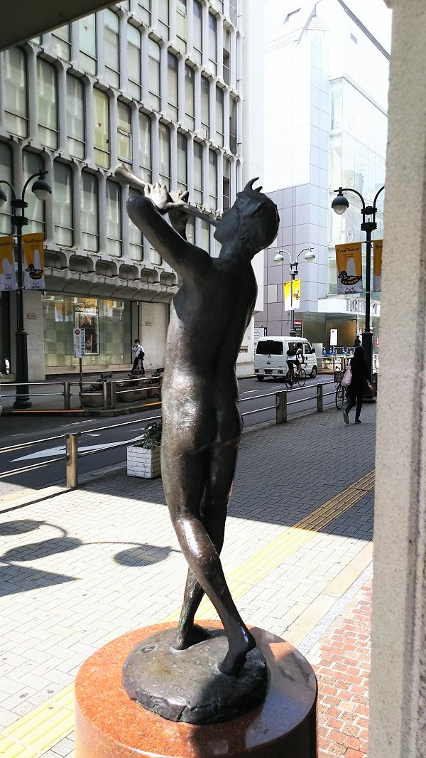 A館・B館の外に立つ佐藤忠良氏のマーメイドの像とパンの像。A館側には「人魚像」。B館側には「牧神像」。それぞれの台座には次のように刻まれています。人魚マーメイドの像『明治34年、詩人 与謝野鉄幹は、妻晶子とともに新居をこの地の西南に営み、雑誌 明星を刊行した。のちにその雑誌から石川啄木、北原白秋、高村光太郎、吉井勇などが出た。』牧神パンの像『明治29年、國木田独歩は愛妻、信子に去られた悲しみ抱いてこの付近に住み、武蔵野を散策し、田山花袋、柳田國男などと交はった。』明治時代から数々の作家・詩人に親しまれてきた渋谷の地を記念するものとして作られた像が1968年4月12日の西武渋谷店開店に際してA館・B館それぞれに井の頭通りを挟んで向い合せに設置されました。作者は佐藤忠良氏。これは地元商店街と渋谷再開発協議会が共同で制作委員会を設立し、佐藤忠良氏に制作を依頼したものです。開店の日の午後の除幕式では与謝野晶子のお孫さんのシェランジェル綏子(やすこ)さんが除幕を行いました。