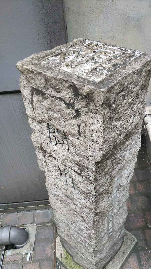 道祖神と間坂の道標。1980年代、ロフト館の誕生にあわせて館の前に設置されました。またB館とロフト館の間の坂がこのとき、間坂(まさか)と命名され、古風な道標もつくられました。