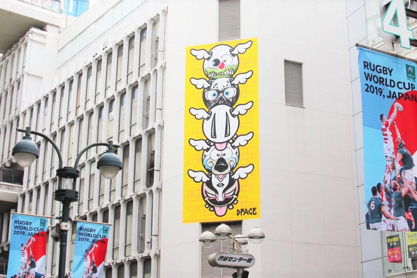 Dフェイス展を記念して2019年にA館壁面に登場したオリジナル壁画。深夜のクレーン作業は4日に及びました。壁画制作の様子は上の動画でご覧になれます。現在は新たなアーティストとして、Meguru Yamaguchi が登場。東京・渋谷区から世界に羽ばたく気鋭のアーティスト Meguru Yamaguchi は約10年振りに日本に凱旋。7月に開催した展覧会に続き、今回自らのホームタウンにレガシーを残すべく、SHIBUYAの頭文字「S」のストロークを昇華させたミューラル(壁画)制作に取り組みました。 より高みな(HIGH)な自分(SELF)を目指して、地上数十メートルの高さから渋谷の街に向けて独自のメッセージを発信。 4日間にわたる制作工程は下のタイムラプス映像でご紹介いたします。■場所:A館外壁(井の頭通り面) ■制作サイズ:約幅3.6m×10.0m