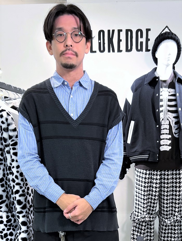 ブロウケッジの吉瀬は2018年に入社し、2020年から紳士服飾の各売場を経験し2023年4月から再びブロウケッジ売場を担当。先輩の藤井の後を追いながら買い付けや販売などで新風を呼び込んでいます。吉瀬はシーズンごとにブロウケッジの提案を楽しみにしているお客さまのために、その時代ごとのエッジの効いたスタイリング提案に努めております。