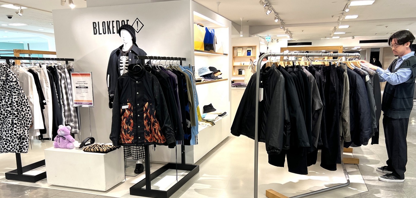 『エッジなオトコ達のエリア』を意味するブロウケッジ(BLOKEDGE)は、国内外の新進気鋭ブランドを独自にセレクトし、エッジの効いたスタイルを提案しているショップです。21世紀初頭に西武池袋本店に登場し、その後変遷を経て、2012年から西武渋谷店にも拡大しました。当初の「エッジ」がカルチャー色の強いストリート系であったのに対し、現在は上品なカラーリングや、ファンシーなディテールが垣間見えるジェンダーレス方向が強くなっています。ブロウケッジでは世界的に有名なブランドからポテンシャルを秘めた今はまだマイナーなブランドまで幅広く展開しています。ブロウケッジはこれからも、時代によって「エッジ」という言葉の意味が変わることにつれ、展開ブランドも比例して変化を遂げてまいります。今回は動画で2023年AWシーズンのお勧めアイテムをブロウケッジの吉瀬がご案内します。ここでご紹介した商品は下の写真のものです。【2023.11月記】