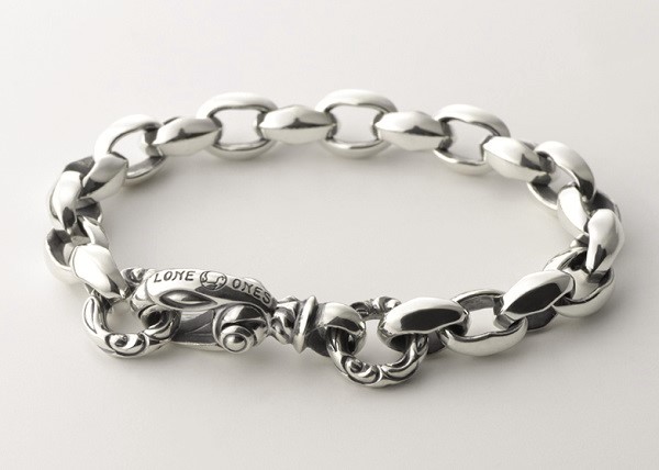 シルバーは金属の中でも可視光線の反射率が最大という特性を持ちます。ロンワンズではこの特性を活かすために燻し加工は抑えて、限られた職人によって丹念に磨き上げた鏡面仕上げを多用しています。しかし鏡面仕上げをしたパーツをチェーンとして繋いでいく際には、繋ぎ合わせ部分を滑らかに仕上げる工程で非常に高度な技術が必要になります。どの角度から見ても艶やかな美しい輝きを放つアイテムには、「磨き」や「繋ぎ合わせ」の門外不出の技術が凝縮されています。