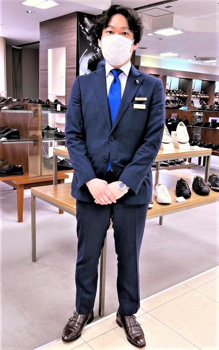 2002年入社。そごう千葉店で紳士靴、カジュアル、紳士洋品、そして再び紳士靴を担当。奥さまなどによるご主人の代理購買により、お客さまご本人の反応が分からないような売場を経験したことにより、実際に着用されるご本人さまとの対面接客を通じ、顧客とのリレーションシップを構築していくという特性をもった紳士靴売場に魅了される。興味が湧いたことが深堀につながり、将来は紳士靴のバイヤーを志す。適切なバイイングには相応の知識が必要であると感じ、同時期にバチェラー・オブ・シューフィッター資格を取得。2011年からそごう横浜店勤務になり、紳士靴売場を担当。歴史・伝統ゆえのこだわりの世界観を持ったブランドの視点からだけではなく、仕事着の一つとして、歩くギアとして、そして人間の体を支える足を覆う屋台骨として、多様な切り口から紳士靴をご提案しています。売場では一見どれも同じに見えてしまいがちでも、長く履いていると大きな違いが生まれてくる靴の特徴を細かくお客さまにご説明することの先に「ここに来れば靴に関して必ず新しい発見がある」と信頼していただけることを信条として仕事に取り組んでおります。