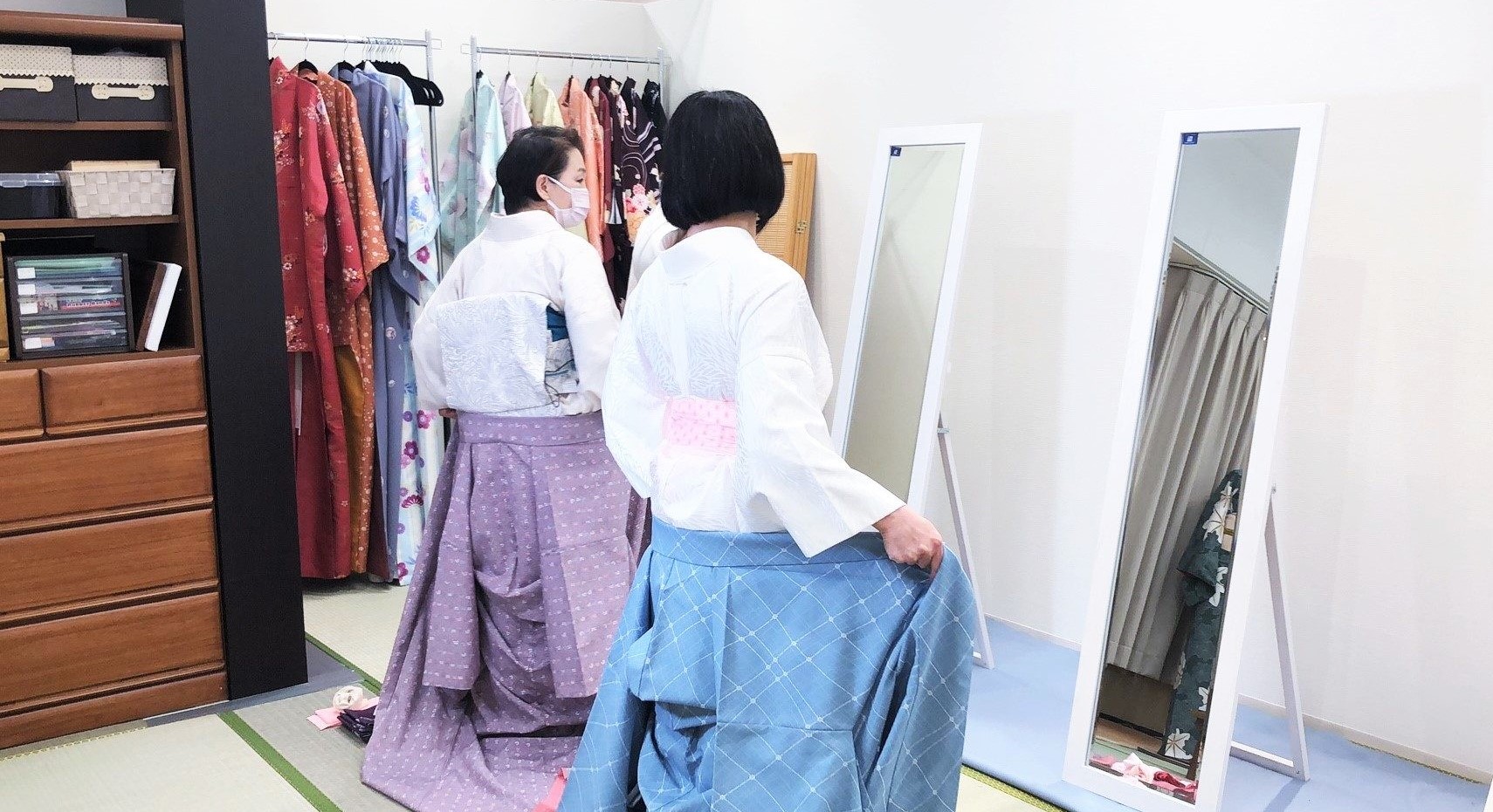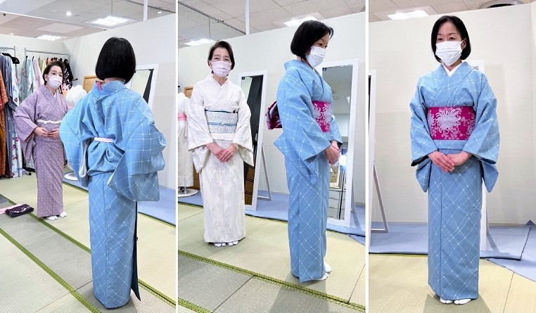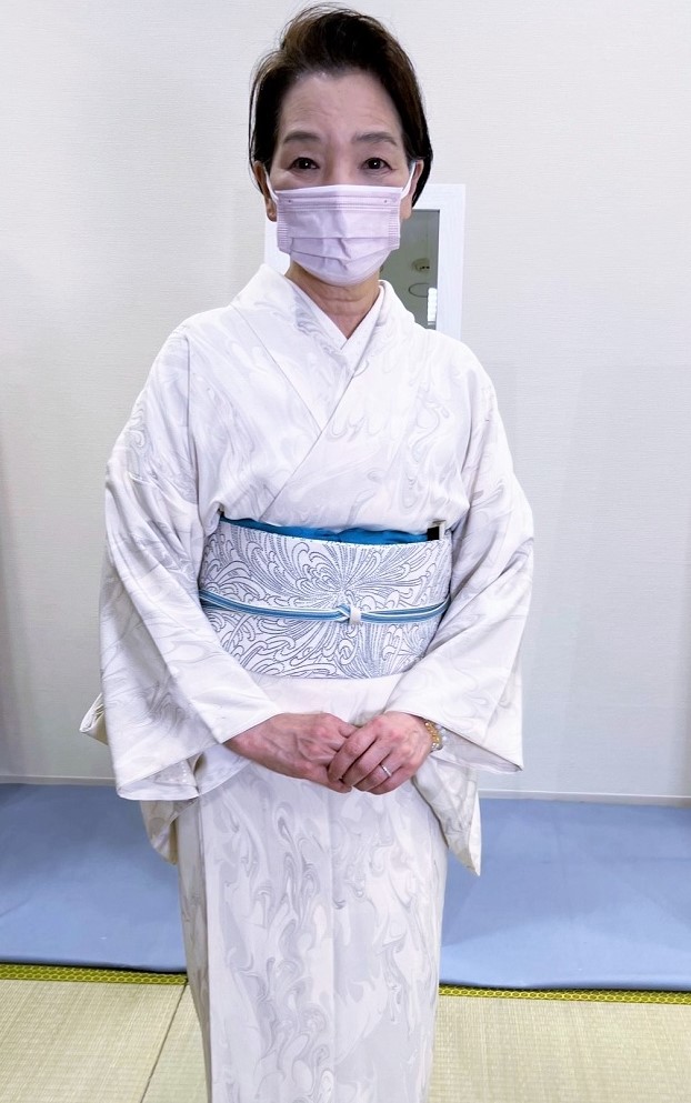 実際に先生の指導できものを着ていきます。花影きもの塾独自のノウハウでどなたでも上達していきます。