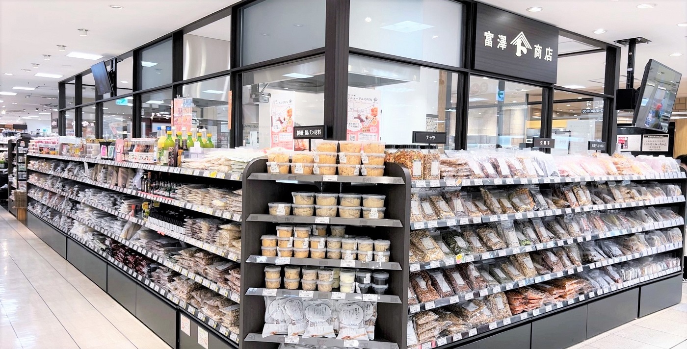 そごう横浜店の管理栄養士の2人は富澤商店コミュニティスペースを使って夏らしいメニューを作ってくれました。写真左の木下 美沙(Kinoshita Misa)は刺身用の鯛と水菜を使った梅肉ソースのさっぱりした和風のカルパッチョをご提案。また写真右の勝浦 千映(Katsuura Chiaki)はゼラチンや寒天とは異なる凝固剤のアガーを使ったフルーツゼリーをご提案させていただきます。管理栄養士、野菜ソムリエの二人は旬の野菜や食材を使ったメニューや作りやすい簡単レシピ、季節行事に合わせた料理をご提案しており、そごう横浜店の魅力を伝えられるよう、これからも日々活動してまいります。ツイッターとインスタグラムを中心にレシピ動画やおすすめ商品、催事の情報発信を行っております。