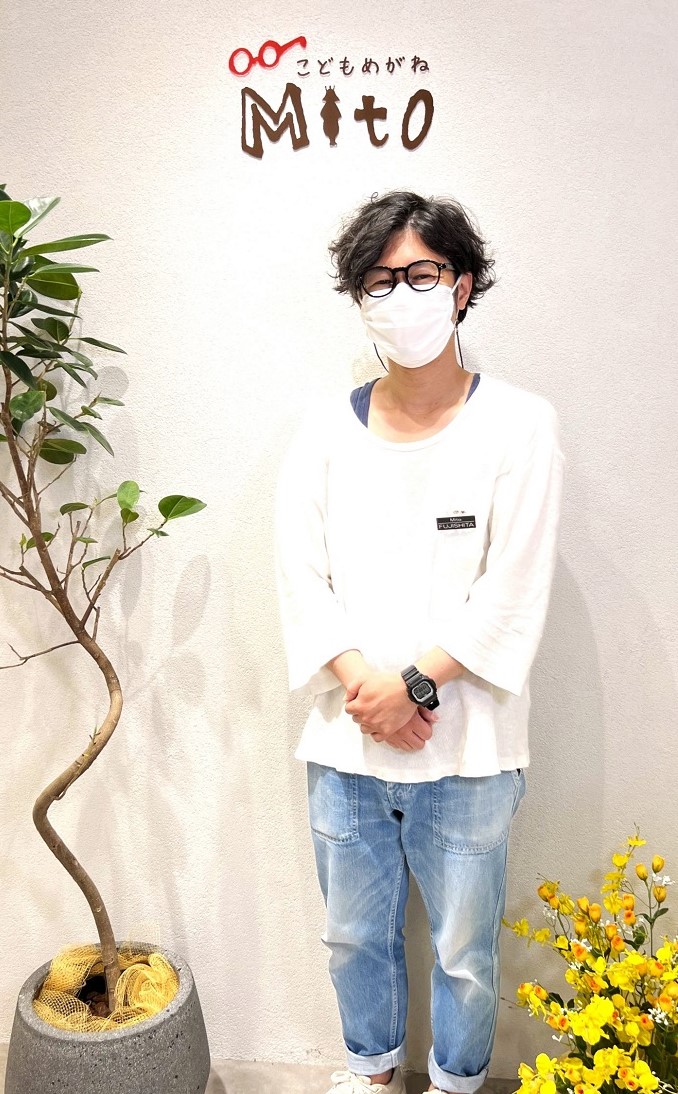 こどもめがねMitoの藤下店長は鎌倉本店に務める傍らそごう横浜店のオープンにあわせ、こちらも担当することになりました。鎌倉でこどもめがねの世界に入り、お子さまたちには安心してもらえるように優しく、お母さまやお父さまには信頼してもらえるプロとしての知見からアドバイスするという誠意あふれる接客をしてきました。優しい色使いの子どもたちに配慮した売場環境で、あくまでもお子さまの気持ちに寄り添う接客は、藤下さんならではです。