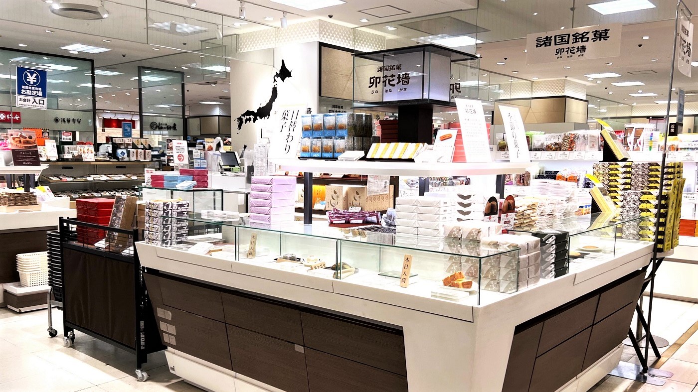 諸国銘菓 卯花墻(うのはながき)は、そごう横浜店、千葉店、大宮店と西武池袋本店にある日本全国のお菓子のセレクトショップ。日本各地の銘菓から季節の限定品まで数えきれないほどのお菓子が並びます。各地の歴史や文化を背景に生まれたお菓子は、日本人にも、とてもその全体像が分からないほどの種類があり、地域出身者にとっては忘れえぬふるさとの味、また旅行でその地を訪ねた人にとっては思い出の味。また、行ったことのない地方のお菓子は、興味惹かれる未知の世界の味です。お手軽な価格で買える一個のお菓子に込められた楽しさは千差万別。伝統的なお菓子だけでなく現代の地方発の人気菓子までそろえ、今の日本をお菓子で知るショップ、諸国銘菓 卯花墻はそごう横浜店に来たらぜひ立ち寄りたいショップです。【2023.8月記】