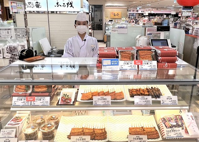 なかおのもう一つの主力商品「うなぎ」のかば焼きやお弁当を扱う拠点は、鮮魚コーナーの「なかお」とは別に和惣菜売場の中にあります。